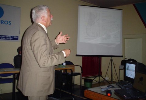 La conferencia tuvo una excelente presentación a cargo del profesor Gustavo V. Necco, Doctor en Meteorología de la Universidad de París, ex-director del instituto Inter-Americano para la Investigación del Cambio Global (el IAI) y miembro de Argentina de la Organización Meteorológica Mundial (OMM) de la Organización de las Naciones Unidas, Gustavo Necco, uno de los especialistas más importantes y reconocidos de América latina en la calentamiento global y cambios climáticos, que hizo un análisis minucioso de los impactos que nuestro planeta está sufriendo como resultado de los cambios del medio ambiente, incluyendo los deshielos polares y la suba de temperatura en diversas áreas del planeta. Además, presentó una síntesis de los acontecimientos principales del tiempo severo en la región del cono sur en los años pasados y comentó los posibles escenarios para el futuro.